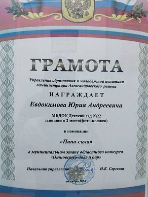 2 место в конкурсе " Отцовство - долг и дар".